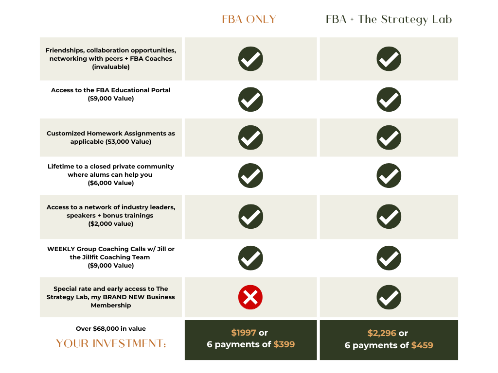 And it includes a LOT of time with me—literally FBA’ers get more face time with me than most of my advanced clients, BECAUSE I know you need the accountability, the ongoing strategy and want to make sure you’re doing things right.